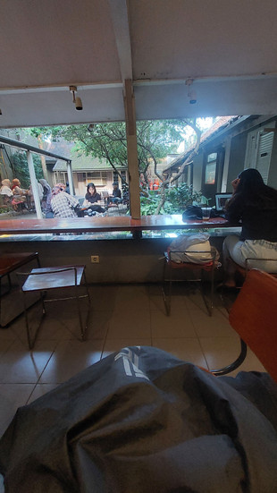 - tapi sayangnya saya dapet meja yang agak goyang huhu, di area belakang semi outdoor. saya survei survei ternyata untuk area belakang dan luar ngga terlalu banyak outlet listrik ya. ya sewajarnya aja sih
