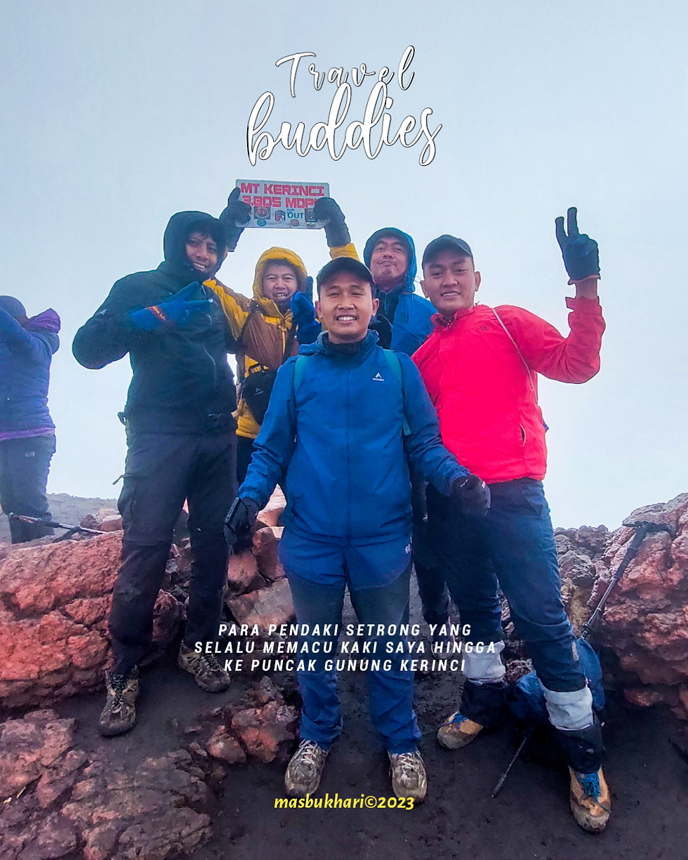 Syukurlah, saya bisa mengabadikan momen dengan teman" setenda. Dan boleh jujur, saya bertahan selama 2 jam di puncak kerinci dengan keadaan selalu diterpa badai. Selang beberapa menit setelah foto" dengan tim, saya pun turun dari puncak dengan tubuh menggigil hebat dan telapak tangan serta kaki mati rasa kedinginan.